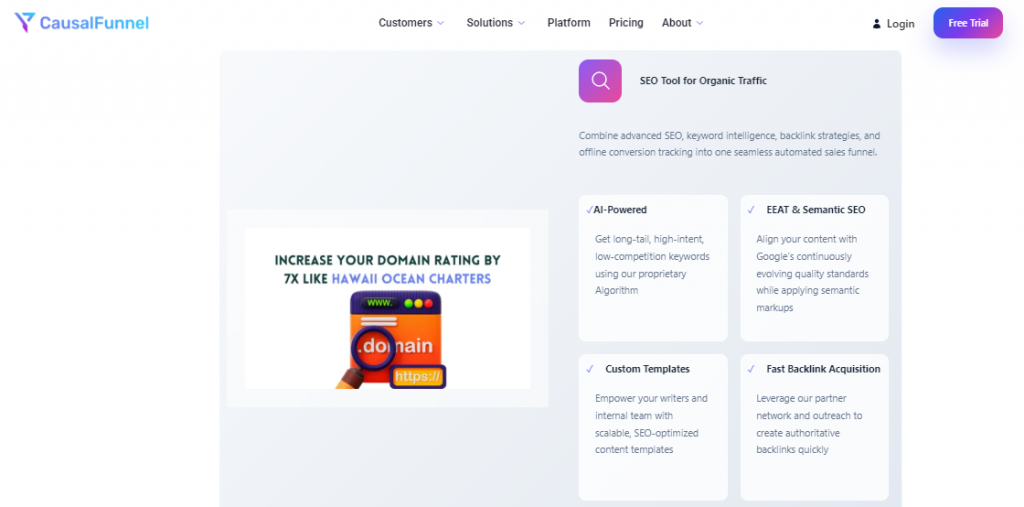 Tools that combine SEO insights, keyword intelligence, and performance tracking like CausalFunnel’s Organic Traffic platform that makes this process seamless and data-driven.