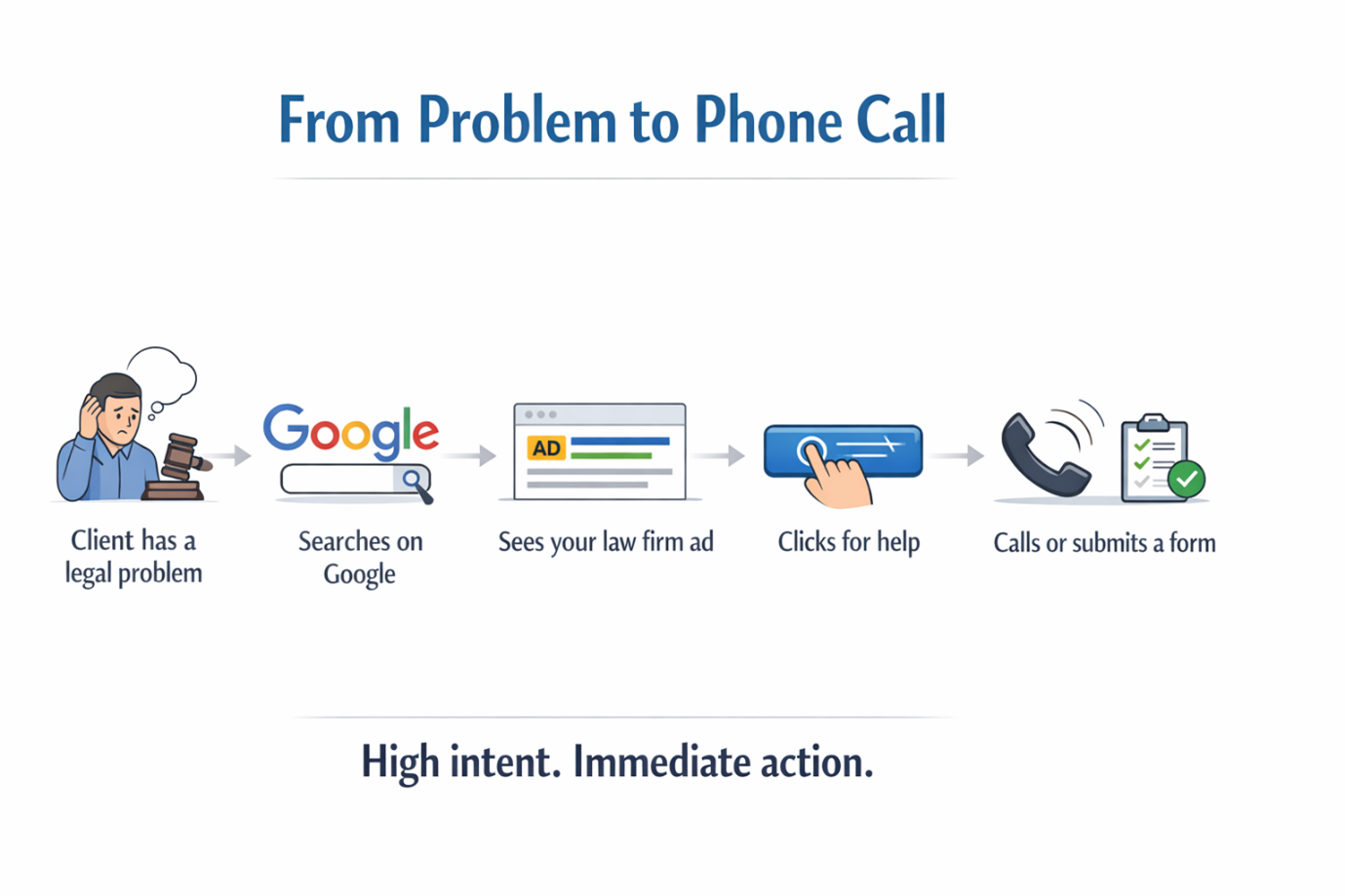 Google Ads work best for urgent or private legal needs. These cases often start with online searches.