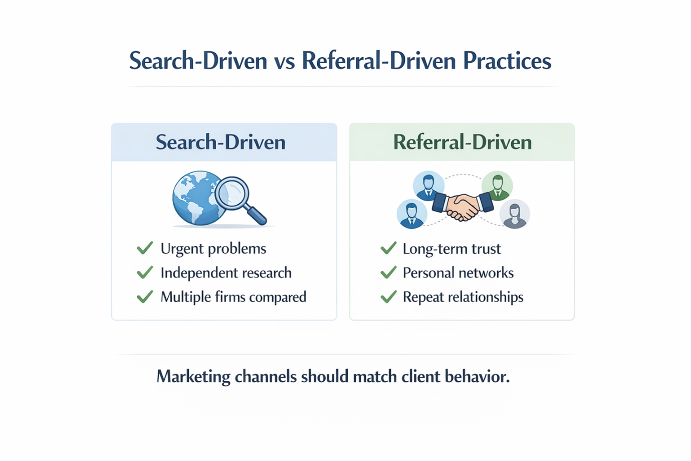 Some legal services depend on trust and relationships. Referrals often outperform ads in these cases.