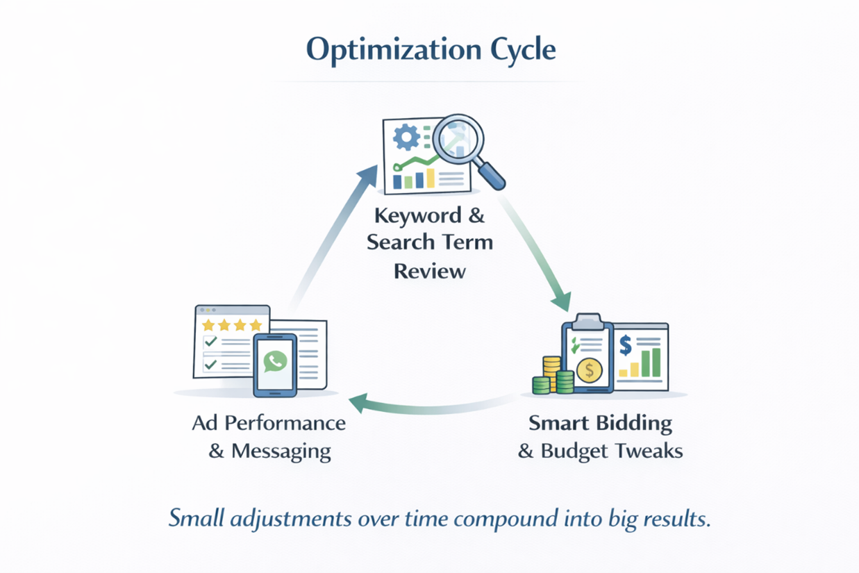 Negative keyword lists should grow over time. Search term reports reveal new exclusions weekly. Ongoing review improves efficiency and lead quality.