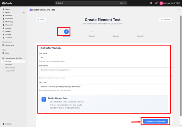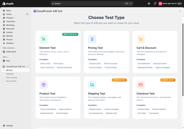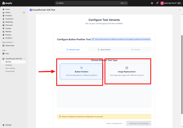 Element testing inside CausalFunnel allows merchants to study how a single visual or interactive component influences store performance. Instead of redesigning an entire page, you adjust only one part of it and measure how shoppers react. This approach brings clarity because it isolates the exact reason behind an improvement or a drop.
