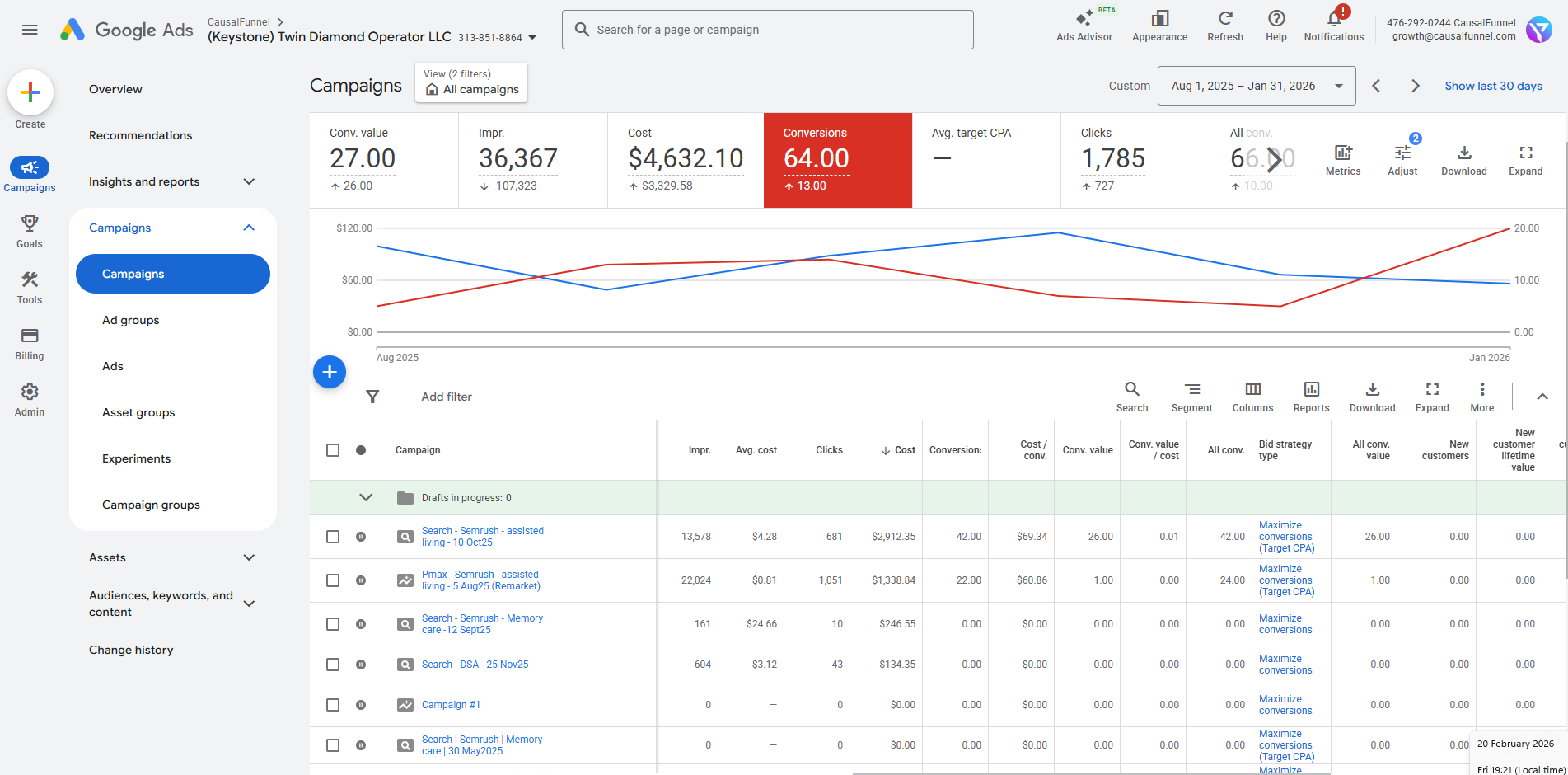 CausalFunnel improved account performance by implementing a structured monthly optimization plan across Search and Performance Max campaigns. The goals were straightforward. Increase qualified inquiries. Lower cost per conversion. Improve consistency in results.