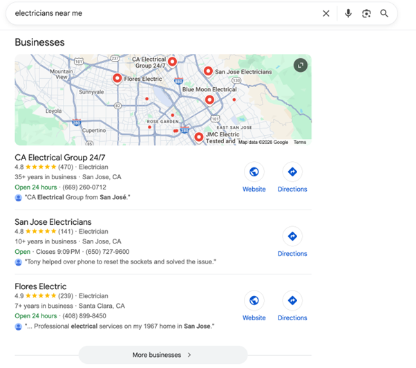 Imagine someone in San Jose flips on the lights after a storm, and nothing happens. They grab their phone and type “electrician near me.” If you’re not on that first page, someone else grabs the job.Β
