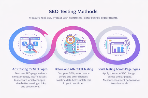 SEO testing is not a one-size-fits-all exercise. The way you test depends on how your site is built, how much traffic you get, and what kind of change you are trying to evaluate. Some methods work well for small, focused updates, while others are better suited for broader structural changes.Β