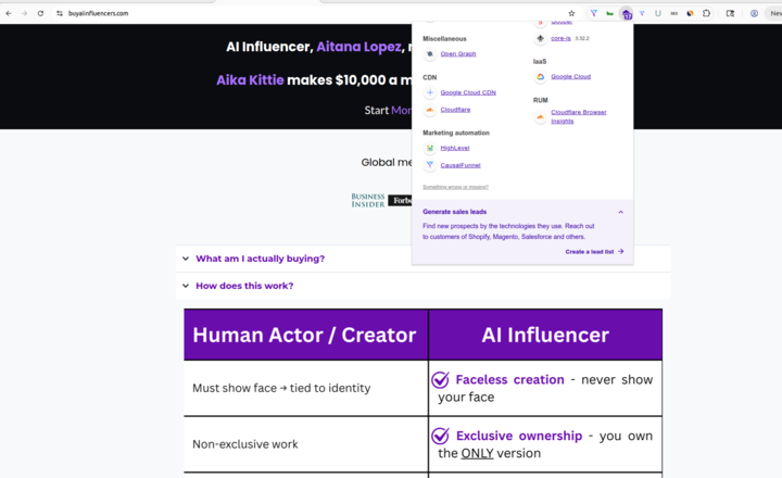 CausalFunnel is Recognized by Wappalyzer