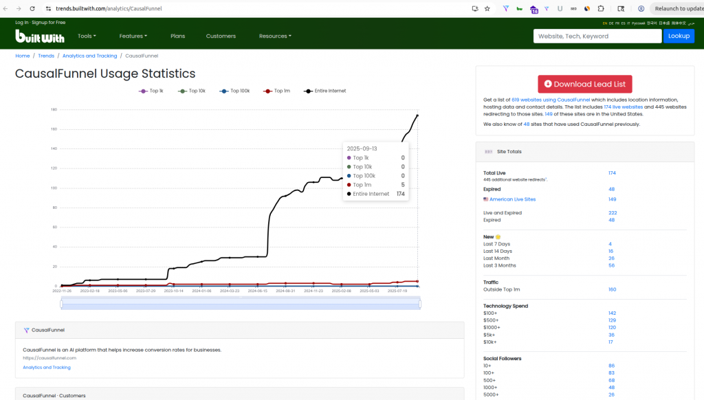 CausalFunnel is Recognized by Builtwith